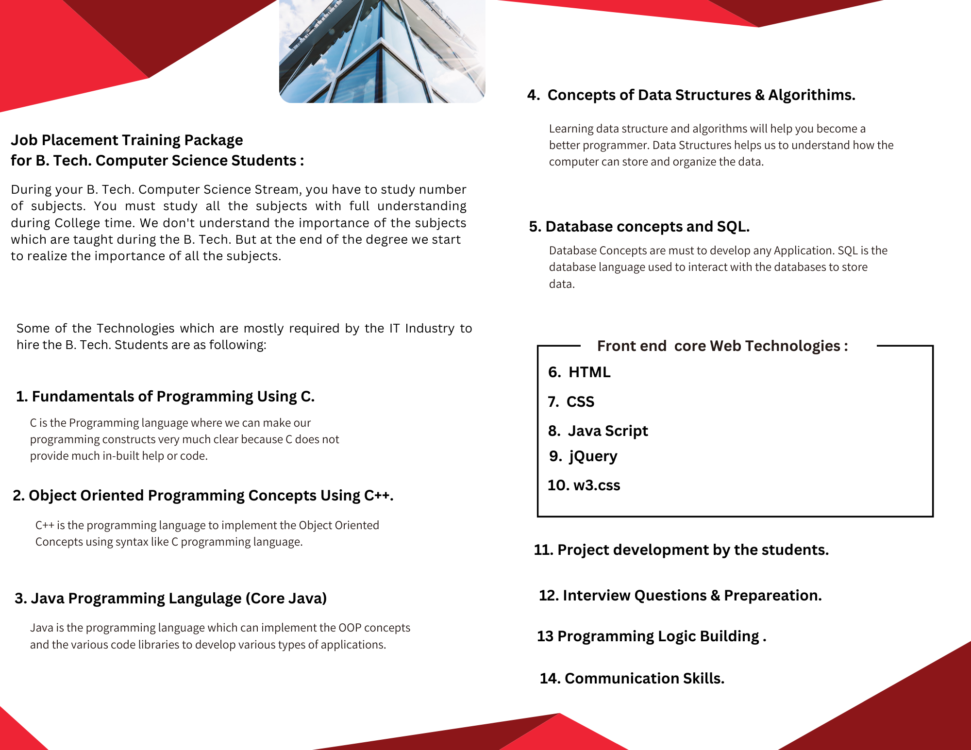 At COMPUHELP We are providing the Job Placement Training for B. Tech Computer Science Students along with your degree at very nominal fee.